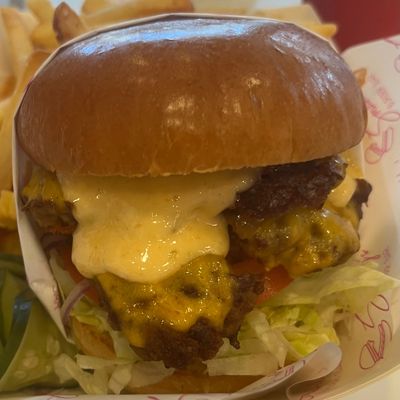 aged cheddar + lettuce + tomato + onions + burger sauce + brioche bun NF